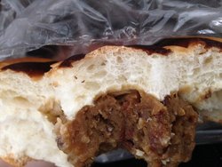 松松面包,只想象肯定不知道是肉松面包。他家的这款面包售价4.5,便宜。面包的肉松用料多,颜色是偏红的那种。作为粘合剂的沙拉酱也多多的。毛毛虫面包一般,馅有些水了…查看更多