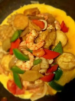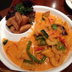 妈咪泰料 Urban Thai这家店是家做泰国菜的,正好外出路过就和朋友在这里吃饭了。点菜的时候看见有红咖喱鱼片,因为没吃过,所以想来尝试一下。它家选用了鲈鱼烧的,鱼片切的有点厚,里面放了洋葱和辣椒一起炒制,红咖喱味道浓郁,鱼片也算比较嫩滑,就是鱼片的量实在太少。…查看更多