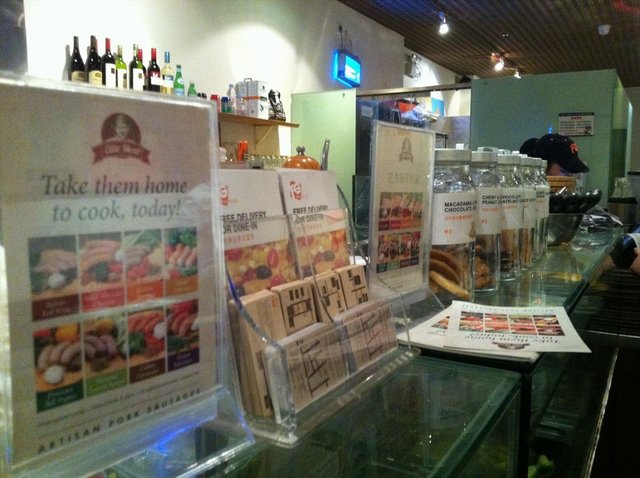 继续团购餐。。其实团购餐挺好的,不要嫌弃,省钱,挺好之前看到SS赞了几次咖啡客啊。。刚好看到有团购,就团了两份某天意粉瘾来了,就杀过去兴盛路的咖啡客啦。兴盛路好多食肆啊。。还是稍微找了一会儿才找到呢。门面看起来挺大的。外面有好几桌,不过都抽烟的。我就不坐外面了。里面位置也不少,还有沙发位。好像还有二楼。不过那晚说给人家订了~近期海鲜当道,连这里也搞起海鲜餐生蚝,龙虾,扇贝等等。。。门口的冰柜。。哈哈哈。我走的时候才发现的扇贝18一只。还挺大的。龙虾119一只哦。。貌似也没有很便宜吧。那天晚上还挺多人吃的。。好吧。进去看看吧。袋鼠你抱着酒这是怎么回事各种蛋糕哦。蓝莓芝士,覆盆子芝士,原味芝士,提拉米苏,布朗尼等等。。基本都是28块钱我没忍住。。帮衬了一块收银台。。各种size的杯杯~终于坐下啦服务员送上菜单。。 不过你还是要去到收银台那里点单我点完单。。领回来的餐具。。拿这么多,还要拿找回来的钱,还有钱包。。怎么就不会给个碟子我放。。然后我当时怎么就不会叫他给个碟子我放。。餐具不是特别干净喔。。团购内容。账单要了两份单人餐,加了五块钱,有三条早餐肠。还加了一份蛋糕饮料上得挺快的。挑了拿铁和柠檬茶。。我有点热气。。只能和柠檬茶看到着杯子,再看看隔壁桌也是吃团购餐的,人家用的是玻璃杯。好吧,姐姐我又郁闷了。。为啥我堂食你给我这杯子。。人家玻璃杯好看多了。。而且重点是,玻璃杯看起来分量多一点好像现在看照片感觉还可以。。当时就是觉得不舒服原谅我的强迫症。拿铁味道还不错。很浓郁。柠檬茶就一般了。。感觉很求其的一杯饮料。上了饮料后。就开始了漫长的等待!!等了半个钟,饿死姐姐了!那会都没力气说话了。鸡肉紫苏青酱意粉&三条早餐肠分量还可以吧。没有想象中那么多。哈哈哈哈。鸡肉都是鸡胸肉吧。白色的,比较鞋~意粉的味道比较怪,我家男人尝了一口就嫌弃了。。味道的确有点怪,不像紫苏味。我以为青酱会是罗勒的味道。结果都不是。不过呢,我觉得还OK啦。。味道还可以。哈哈哈哈。我可以接受。意粉的话软硬适中吧。。汁有点多,味道感觉不够浓郁。。如果是罗勒味的,我更爱香肠味道还不错。。好像是鸡肉肠来的吧。这个是鸡肉忌廉汁意粉上面那坨震腾腾是啥!!换嘅角度看看。。。好吧。我白痴的以为是忌廉!!!!!一直戳戳戳,企图把它弄散拌匀!!我是饿傻了吧!要不也不会突然以为那是忌廉看看看看!!人家是鸡蛋!!溏心蛋呐!!!!真是笑死人唉。。看来我不能饿着,还真会变傻忌廉汁比较淡吧,跟上面那个一样,不够浓郁。里面除了鸡肉还有培根和蘑菇。。蘑菇居然是辣的,这是肿么回事两个意粉总体味道还可以吧。但是感觉不够满足。。没吃到好吃的,总感觉不满足。。开始想念星美乐的菌菇意粉了,斋的也超好吃!还有107的鸡蛋汁意粉。。那才叫满足嗯。终于等到甜品时刻。。要的覆盆子芝士蛋糕。。店员MM一开始拿了蓝莓蛋糕就过来了。。噗,都不看单的么。旁边挤了一坨cream。。挺好吃的cream,很清爽,不是很甜,一点都不腻。。整个芝士蛋糕看起来比较干啊。。覆盆子不会很酸,不过总是吃到它的籽芝士蛋糕口感韧韧的好奇怪,粉放多了嘛?慢慢吃还是挺滑的。。芝士味道还算可以。就是感觉依旧不是特别满足还是自己做的好吃。。最后我想说的是。。那里实在是太太太太热了!!那天本来就好热,结果那里的空调还超级不给力。郁闷死。吃到一身汗!姐姐这是在大排档么!!下次不会来兴盛路这边,环境很一般。。 …查看更多