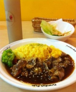 正大逛累了找了这家填饱肚子,店开在地下二层,有点难找。门口的那两个蛋形座位很可爱。中午有套餐,但是没有我喜欢的咖喱猪扒蛋包饭,所以我点了黑胡椒牛肉的,尝试下新口味嘛。套餐里配有奶茶和色拉。牛肉太老了,有点难以下咽啊。奶茶味道还是很浓的。…查看更多