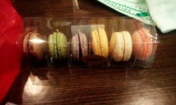 之前团购的甜品套餐,里面正好有包含向往已久的马卡龙,所以就下手啦~~拿到之后包装挺精美的,一个个马卡龙间隔着放在一条盒子里,看起来挺诱人的,尝过之后觉得味道太甜了,和我之前在国外吃的正宗的马卡龙的味道还是有点差距的,外皮也不脆了,里面的内陷夹心除了甜还是甜,有点小失望~~还是套餐中的另外一个忘情脆的味道不错,酥酥脆脆的,上面还有好多的杏仁片,口感味道都挺香挺好吃的~~下次准备来尝试看看年轮蛋糕,哈哈。…查看更多