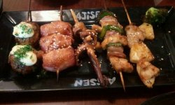 在味千里面除了钟爱味千拉面之外还喜欢他们家的烧烤拼盘~~一份里面一共有五样东西,吃起来各种特色,其中觉得烤培根的味道最好了,烤培根挺入味的,而且里边裹着一个小番茄,外面培根的香味加上小番茄酸酸甜甜的味道,两者产生了奇妙的化学反应,所以吃起来口感很是丰富,同时又很清新。此外烤肉丸子也喜欢的,就着上面的cheese酱汁一起送进嘴里很是满足呀。…查看更多