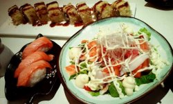 和朋友正好经过这边,就来到这儿尝试看看~~点的是李公主卷、海鲜色拉和一些其他类型的寿司,觉得李公主卷确实不错,一份里边足有八个寿司了呀,量挺多的,外面裹着层脆脆的东西,所以说口感比以往吃的寿司要丰富一些,寿司里面的食材也挺新鲜的,蘸些芥末塞进嘴里感觉很是满足~~海鲜色拉味道也挺好的,里面各类海鲜种类比较多,和色拉酱、生菜拌在一起吃,别有一番风味的感觉。…查看更多