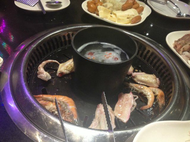 这是一家以韩式烤肉和涮涮锅为主的餐厅,也有类似于套餐之类的石锅饭。我们在网上团购了他家的自助餐一位58元包括了饮品(原价要98一位)。吃的东西选择还是蛮多的基本上我们平时吃烤肉的东西这里都有,我们比较喜欢吃猪五花和虾,酱料也需要自己调,因为是周末所以只有2小时的时间,但其实两小时也已经足够了。团够的58一位还是很划算的,因为这里吃的东西很多,分量也很充足。…查看更多