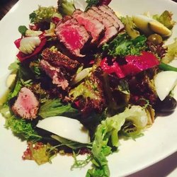 纳摩 Naam Thai 这家店开在音乐学院附近,店面不大,但是环境非常幽雅。这家店主要是做东南亚菜的,特别喜欢它家的牛肉色拉,选用了上好的牛里脊肉,里脊肉烤了五分熟,外面有点脆的感觉,里面的肉还带着点血丝,入口嫩滑,搭配上新鲜的生菜、鸡蛋和辣椒后味道更美味好吃。…查看更多