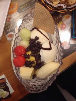 港式甜品店这家店开在七浦路市场附近,生意还很不错,店内环境整洁,服务员也很热情。它家的水果冰淇淋不错,选用了香草和芒果口味的,冰淇淋不是很甜,入口滑滑的,上面搭配了西瓜球,香蕉,白瓜球和些许红豆颗粒,混合在一起口感丰富好吃。…查看更多