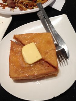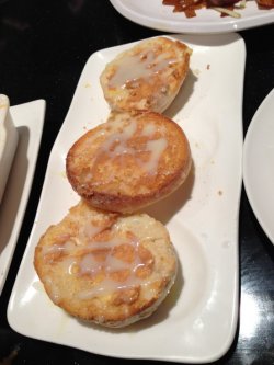 听说他家的午市性价比不错,所以特地去尝一下,点了很多点心,总体感觉味道一般。炸鲜奶:其实就是把奶油之类的东西放在油里炸一下,外层挺香挺脆的,里面软软的,不是太甜,但一个下肚后,有点腻。马蹄糕:一笼3块,是热的,糕甜度适中,里面还有不少地力,吃起来挺爽脆的,就是糕的韧劲差了一些。雪梅娘:外面的皮糯糯的,里面的馅主要是鲜奶,另外还夹了些芒果粒,吃在嘴里,凉凉的,奶味十足,如果能再加点冰淇淋,口感就更棒了。鲜奶椰汁糕:一盘有3个,分别做成三款不同的样子——叶子和2款花,很精致,口感像布丁,软软滑滑的,奶味很足,不过稍微有点腻。千层蛋黄糕:这款点心是蒸出来的,感觉就是在发糕里放了些蛋黄,糕发的不错,很软很松,略有点甜味,但蛋黄用的是咸蛋黄,所以总体口感又甜又咸的,有点奇怪,不过很管饱。雪蛤酥:这道点心真心不错,表层的酥皮做的很脆很酥,里面湿漉漉的,没吃出来是什么做的,一粒粒的,应该是雪蛤,雪蛤的量还挺多的,口感比较清淡,而且一点都不干。…查看更多