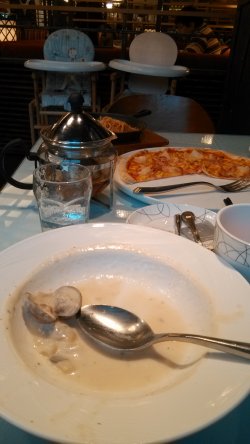 比较惬意的一家西餐厅,在南京西路上,二号线下来走过去一路上也都是风景。这家店在1788国际中心里面,也算是闹钟取静,喜欢舒适安静的朋友这里倒是个不错的选择。入座后,服务员会很热情的附上菜单,菜单做的也精致,菜肴看的一清二楚,点了蛤蜊蘑菇汤、还有夏威夷风情披萨、蔬菜色拉、意大利香薰醋鸡肉、芝士蛋糕等等,蛤蜊蘑菇汤很好喝,有奶味,蛤蜊也很鲜;披萨是薄底的,吃的不过瘾,但是上面的馅料还是可以的。挺喜欢的~~…查看更多