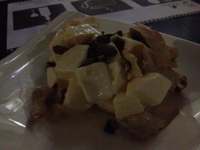 竹炭面包好好吃,外边脆内里柔软,意粉做得不错,但份量唔算多。环境就差小小,总觉得油烟味比较重。晚上坐在室外,灯光显得十分昏暗,水位费2元一位,团购的是没有发票。烟鸡胸核桃华多夫沙律,里面苹果比较多,核桃好碎咯,味道还好吧。服务员工作态度一般般,隔壁桌的还漏单了。…查看更多
