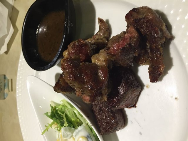 觉得呢间野无论环境还是价格都同卡朋差不多的餐厅。环境几好,几适合情侣聊天的地方。有套餐,牛扒份量都几多,味道还好啦,40多元一个,原只吊烧鱿鱼做得唔错,好好味。餐厅有三层,觉得二楼相对比较安静,埋单要自己落一楼收银台的。…查看更多