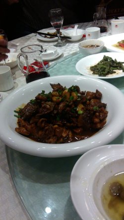 开了好几年了,最近一次单位吃年夜饭选择了这里,菜量很大,印象最深刻的一道菜就是牛头,霸气十足阿,价格也不便宜,牛肉酥软可口,有各种蘸酱,挺好吃的。 烤羊排:羊肉很入味,烤的很香,不腥,滋补的一道菜。 鹅爪,挺大一只,煮的很酥,啃起来方便。…查看更多
