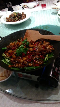 离单位很近,和同事聚餐经常选在这里,价格实惠,饭店挺大的,包房也多。喜欢这里的牛蛙,肉质饱满,略带辣味,酱汁都渗入到牛蛙里面,很好吃。臭豆腐:闻起来臭吃起来香,挺下酒的一道菜。栗子鸡:量大,栗子挺糯的,鸡也很香。总结:价格实惠,菜量大,包房多。…查看更多