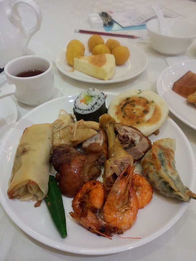 又一次团购恒苑酒家的自助餐了,这次来的品种没有上次那么多。春卷很脆,里面的馅料很丰富。秋葵味道也不错。猪手挺好吃的。虾的味道也不错。煎饺不够脆,葱油饼也是,放太久了。寿司依然不太好吃。烧鸭好吃,杏鲍菇也好吃。香芋地瓜丸,我的最爱,好吃。蛋糕一般。绿茶桂花糕,味道一般吧。凤爪挺好吃,虾饺和排骨一般。烧卖不过不失。椰汁炖鸡,鸡肉没输。有点生,不太敢喝,但是味道还是可以的。猪脚姜,味挺浓的。叉烧餐包挺好吃的,我吃了好几个,鸡肉也挺好吃的,炒饭,炒粉就一般般。云吞面味道一般啦,面不够爽口弹牙。糯米鸡里面竟然没有鸡肉的。味道就是很传统的糯米鸡味,不过不失。肉丸,挺好吃,酿豆腐也挺好吃的。牛腩,还可以。服务态度挺不错的,性价比也不错。出品:四颗星服务:四颗星价格:四颗星环境:四颗星…查看更多