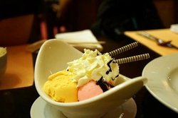 他家是一家高档的西餐厅,环境非常好,开在陆家嘴,交通超级方便的,我们吃了牛排,甜点超级多,喜欢冰激凌,造型精美哦,分量实在,有3个冰激凌球,分别是芒果、草莓和香草的,搭配了一点点巧克力,口感很浓郁的,我超级爱香草的,奶味足,基本不注水的,很浓,类似于牛乳…查看更多