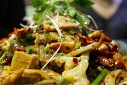 明星邓家佳开的,就是爱情公寓里的唐悠悠啦~装修得很精致,环境挺好的,有几个不同特色的包间,楼顶还有个大露台。吃的是麻辣九宫格,他家有两个比较特色的菜,肥肠+香槟,鸭肠+跳跳糖(好像是,记不清了)。我们点了肥肠和香槟,说是吃起来有独特的味道,好吧,我没太大感觉,但是挺好吃的。另外有个涮的菜是仙草条,就是甜品里常用的那个仙草,黑的果冻状,切成长条,涮起来没太大味道,不过比较去火,吃辣锅很适合。还有HI辣牛肉跟HI辣鱼,说是每桌必点的,是挺好吃的,就是好辣好辣啊。…查看更多