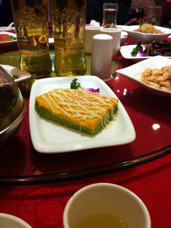 以前只在光明邨门口买过小吃什么,还没上过楼上吃饭这次正好老师在六楼包厢举行蓝宝石婚庆典,就有幸一尝光明邨的菜式啦~底楼有直达电梯,但是只到5楼额,还剩一层要自己爬上去六楼三个包厢中间可以拉开来,拼成一个小厅,能摆六桌还有音响设备和PPT、投影的菜的味道普遍中规中矩,没有什么特色但也没什么特别不好吃额这个长得样子蛮好额,一开始还以为是甜品梳乎厘-蛋奶酥勒,后来吃了才发现里面是蟹粉。不过杨子好么用,蟹粉烧的太腥了,味道不太好,只可远观啊~…查看更多