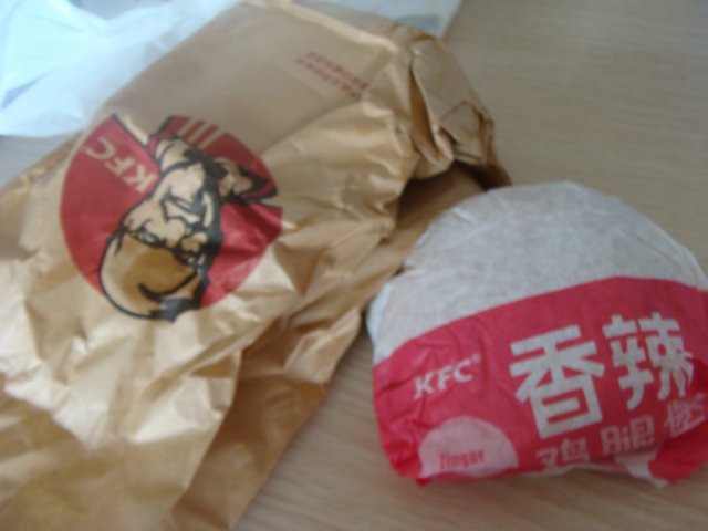 这间肯德基还挺大间的,旁边就是新一佳超市,所以说这里的客流量还是挺大的。那天见人多,所以选择了打包带走。香辣鸡腿堡,味道带点少辣,味道还不错。打包的薯条味道就不太好吃了,已经软了,一点也不脆了。炸鸡亦炸得很香,很喜欢这个味道,上次赶上买一对送一个,划算。…查看更多