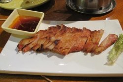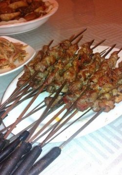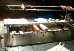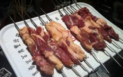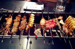 朝阳店没有望京店的门脸那么别致啊,不过也是很有特点,广是那么长店名,就很霸气。晚上7点半到的,排号等到了8点半,火啊!里面是两层小楼,环境不错,喜欢喝酒聊天的可以考虑。服务很一般,因为人家很忙啊,一件事说三遍服务员也不一定能记得。他家是炭火烤串,双层烤架,电动翻转,智能调节。对于动手能力强的童鞋,这挺有乐趣,但是平时不怎么下厨的就惨了,我上个洗手间的功夫,我朋友愣是烤糊了一大片!基本上所有烤串的品种这里都有了,鱿鱼,杏鲍菇,培根,五花肉,鸡皮等等,还有涮毛肚什么的。羊肉串有点偏肥,肉质还不错,没什么膻味。肉筋也不错,不过比新疆馆子还是有差距的。牛肉串倒是第一回吃,选的是牛健筋,比较有嚼头,不过不推荐牙不好的童鞋吃,嚼着挺累的。板筋还算是软烂,不过没什么亮点。鸡爪虽不算肥美,但是难得的是,收拾得很干净,比一般的小店讲究,指甲也是剪掉的。烤翅有很多种,有蓝莓的、芝士的、蜜汁的、芥末的、辣的,芝士的裹着芝士粉,,蓝莓沾了蓝莓汁,芥末的一点也不辣,蜜汁的有点怪,辣的还好。生蚝的大小不一,不算肥美,不过还算鲜嫩多汁。店里还有特色的鲜榨果汁,就是比较慢,最好提前点,一扎分不了太多杯。…查看更多
