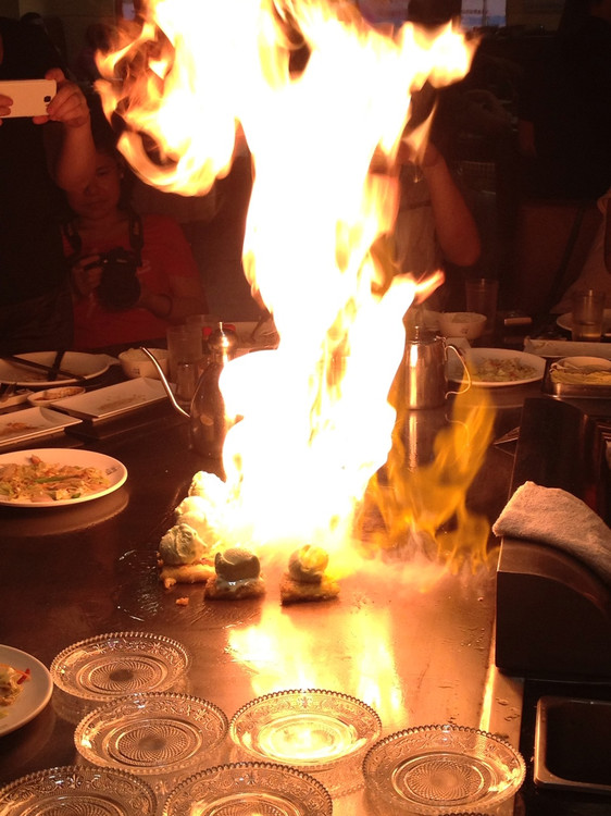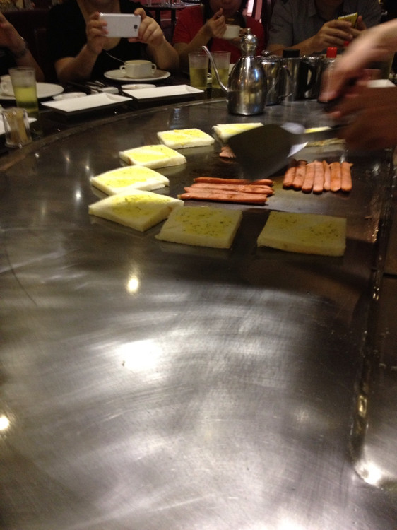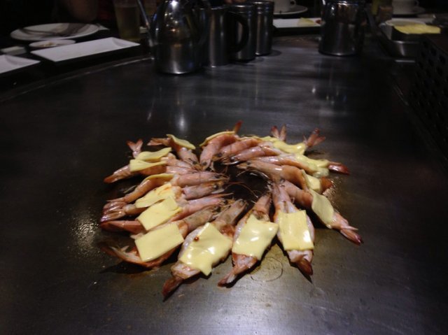 A:双人经典套餐(仅售58元,价值128元)- 鱼子酱蒸蛋(2个)- 芝士焗明虾(4只)- 金针菇牛肉卷(4卷)- 黑椒鸡扒- 纽约客西冷牛扒- 铁板火焰香蕉冰淇淋(2份)- 铁板时蔬- 法式浓汤(2份)- 米饭(2份)- 茶位(2位) 位置有d偏,主要是因为5号停机坪呢度比较少车到啦!内部其实唔算大,但是基本上几乎每个位都是有铁板嘅,可以睇到师傅点整d食物出来!喷火果度真是好震撼!!我地试食咗呢个套餐。法式浓汤:其实就是奶油南瓜汤,淡淡嘅奶香点缀住南瓜汤,貌美,但是最后几啖有dd甜。餐前小时:香肠同牛油面包,这个是用来开胃嘅,唔多讲啦!鱼子酱蒸蛋:微咸嘅鱼子酱衬托住淡味嘅鸡蛋,唔错嘅搭配吖!芝士局明虾:虽然经过铁板,但是虾肉依然鲜嫩,加上我最爱嘅芝士,好味!!而且虾头有膏,更加香吖!!!金针菇牛肉卷:好juicy嘅一道菜,虽然我觉得牛肉好似有d老了,但是金针菇好juicy,好正!!黑椒鸡排:唔错!鸡肉几滑~西冷牛排:师傅无将佢整到全熟,大概是怕会太老吧!黑椒味比较重,重口味之作吖!铁板时蔬:就是铁板时蔬咯!火焰香蕉冰淇淋:香蕉好似预先炸过嘅,再系铁板度煎一下,加上雪糕!然后,点火!!!虽然唔是第一次睇,但是都觉得好震撼!!!最后淋上朱古力酱,完成!!好味!!!…查看更多