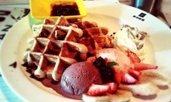饮料嘛他家的果漾气泡系列感觉都不错,热巧克力麻麻地~下午茶时段果然人多,多到点单排长龙,多到摩尔庄园要等一个半小时!!!好吧,只能点那个冰淇淋的华夫了。。。结果也是等了约莫半小时,等华夫上来的时候,冰淇淋基本已经化了一半了。。。看来下次只能正餐时间去,下午茶实在太恐怖了。。。…查看更多