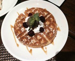 Ming's Cafe' 铭咖啡他家开在宜山路,这边有几条地铁,交通方便,他家的咖啡量还挺大的,搭配松饼,造型精美,放了奶油,味道很浓郁的,挺脆的,一份量很大,可以2个人分享,人均30元…查看更多