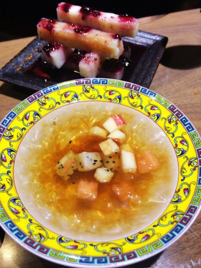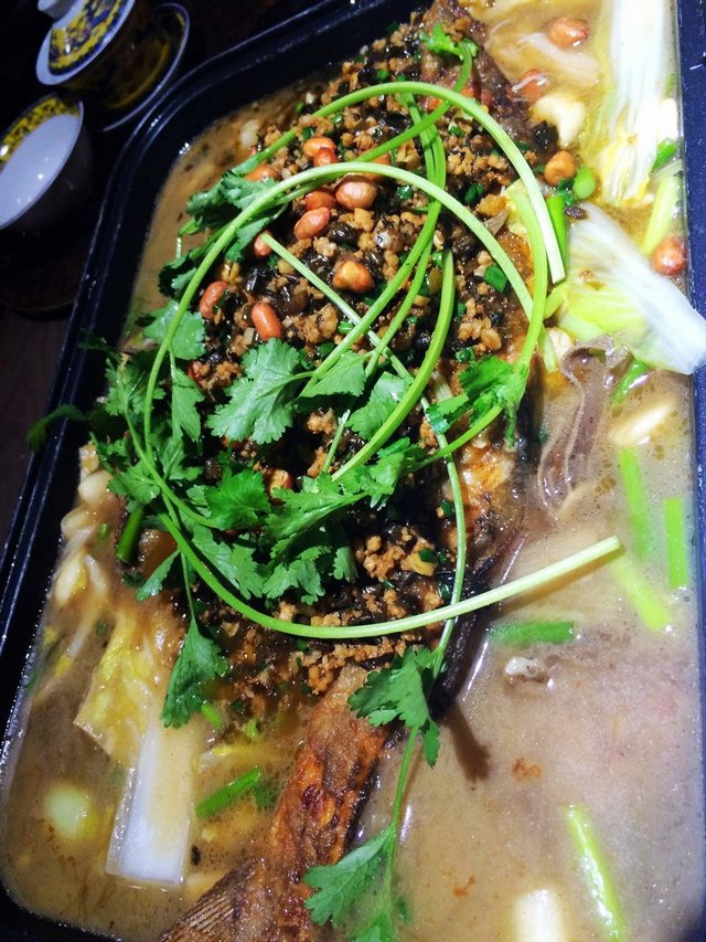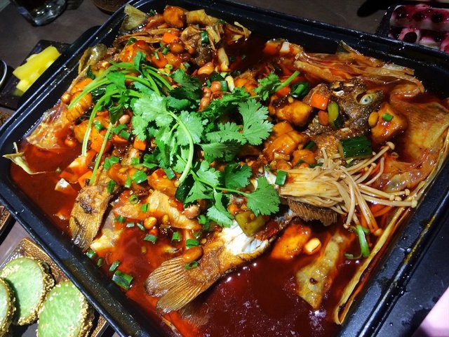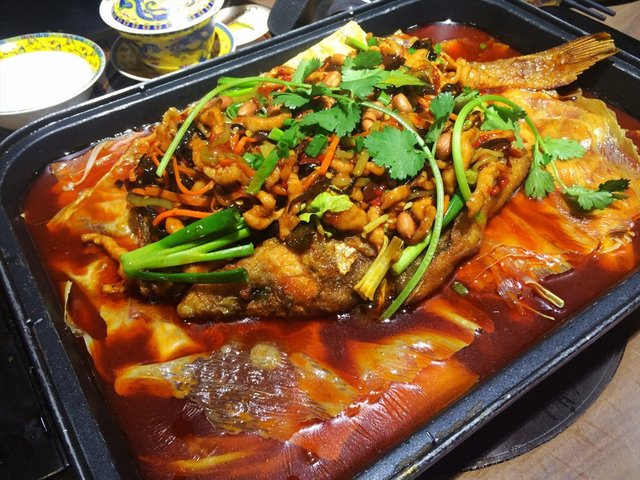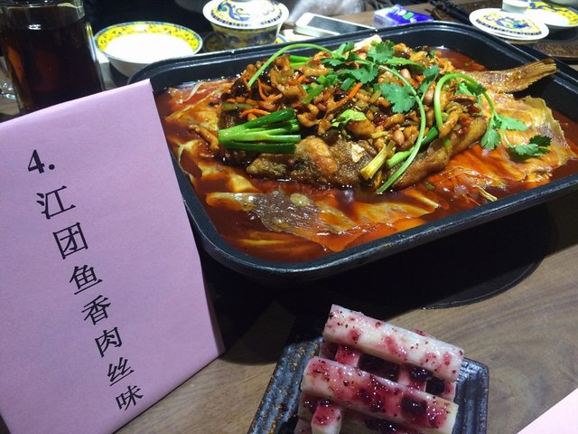 龙门烤鱼感谢开饭!感谢龙门烤鱼!~新年新气象呀~~我们又聚在一起•~开饭年会•~今年奖品尤其多啊~~~试吃菜品:前菜:蜜脆蓝莓山药、古法眉山泡菜、果汁瓜条;主菜:鲈鱼番茄意面味、鲈鱼宫爆鸡丁味、江团宜宾芽菜味、江团鱼香肉丝味、钳鱼双椒味;配菜:爽脆金针菇、娃娃菜、毛肚、重庆豆皮;主食:龙门帝王芋儿鸡、龙门惊艳小龙虾;小吃:炒汤圆、相思双皮奶、绿茶饼、脆皮香蕉、榴莲、杂粮糕、香芋派;饮品:桂花酸梅汤、龙格格牛奶龙门烤鱼位于东方宝泰负三层,门面挺大,环境装修也是很古色古香,幽暗的环境,清雅的木桌,还有墙上的装饰,都很中国风。而这里最特别的不是装修而是各种口味的烤鱼。这些口味,真是闻所未闻啊~~~果汁瓜条~~甜甜的脆脆的••还以为是萝卜,原来是瓜条呀~~蜜脆蓝莓山药16元:甜甜酸酸,很清脆。古法眉山泡菜10元~~略辣啊~~江团鱼香肉丝味:江团鱼肉鲜美,上面是鱼香肉丝铺满了~~哈哈~~加上木耳,牛百叶,豆皮,金针菇等配菜,超级赞~~~小辣呀这个•~~鲈鱼宫爆鸡丁味:鲈鱼上面铺满宫保鸡丁,好多鸡肉呢••一点不少料••••这个也是比较辣的~~~鲈鱼番茄意面味:不辣的都喜欢~~红红的是番茄汤,而且意粉好多好多••绝对不怕吃不饱•••哈哈钳鱼双椒味:比较辣的双椒味呢•~~钳鱼也很不错~~~江团宜宾芽菜味:颜色看起来就比较清淡哦~~上面的看上去像冲菜,真的是芽菜么~~嘿嘿••不过这个真的好好吃•••温温润润的感觉~~~冰粉:吃完烤鱼来一个冰粉,瞬间让人从热火朝天回到清凉~~龙门帝王芋儿鸡:超大一个锅,感觉像皇帝吃饭用的~~里面是酸菜鸡,还有好多芋头~~~挺特别的••龙门惊艳小龙虾:颜色就惊艳,美美的一大锅,小龙虾吃起来挺新鲜,肉质结实•~~炒汤圆:甜甜软软糯糯的汤圆~~比较黏~~相思双皮奶:跟名字好不像呢•••里面原来包着的是牛奶••绿茶饼:薄脆的,里面是芋泥••很不错脆皮香蕉:萌萌哒小黄,里面是黏黏的香蕉味糍。榴莲派:印度飞饼?•哈~~榴莲味••很脆杂粮糕:豆子很满呢•••香芋派:也很脆••馅料挺多桂花酸梅汤:酸酸甜甜很开胃,伴着烤鱼吃很解腻呢••龙格格牛奶:很特别呢•••牛奶里面好多水果,还有玉米片•••不错不错东西都很好吃•••价格也不贵~~好多大奖,还有好多奖券~~~虽然我没有中大奖~~但是拎着安慰奖也是很嗨森的啦•••谢谢开饭~~…查看更多