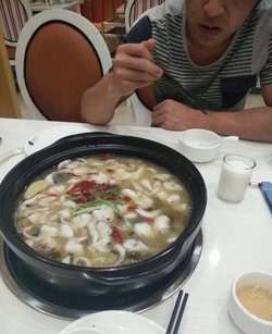 这家酸菜鱼可以自己点鱼,然后称分量最后算价格活杀,黑鱼营养价值还是比较高的,选了一条近四斤重的黑鱼,可以说是最大的一条被我选走了,端上来的时候鱼肉超满,感觉酸菜好少,味道是微辣型的,鱼骨剔除的很干净,从头到尾没吃到过鱼骨头,吃完后身上热热的,不错的晚餐。…查看更多