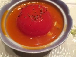 雍廷这家店开在新闸路上,店面宽敞,店内环境幽雅,服务员也很热情。这家店是老板请客的时候光顾的,它家给我印象最为深刻的就是南瓜番茄盅,小小的一盅,一个被剥了皮的番茄放在中间,上面浇满了用些许菌类熬出金黄色的南瓜汁,口味还满特别的。…查看更多