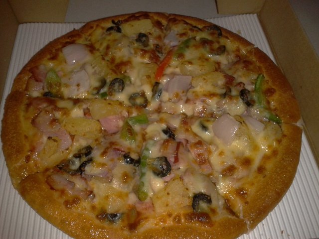 路过才知道原来这边也开了一家尊宝pizza。地方还是一如既往的细,总共也就4.5张桌子,大多数顾客都会选择打包或者外卖的。用了优惠券买了个10寸的至尊pizza,39元。有优惠券或者会员卡真的便宜很多,这个原价好像要50+的。pizza底不会很厚,比较松软。而且料超多的,还有几颗咸橄榄,搭配着pizza原来还挺好次的。热乎乎的时候芝士还会拉丝,好吃呢!!…查看更多