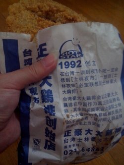 正豪大大鸡排这家算是比较正宗的台湾大鸡排,他家在上海开了很多店铺,店面都不是很大,主要是以卖鸡排为主的。他家的鸡排特点就是特地的大,可以说比脸还要大,他家的鸡排是不剪开的,是让客人一整个咬着吃的,属于非常豪放的。鸡排炸的色泽金黄,外脆里嫩,搭配上些许调料后味道更浓郁。…查看更多