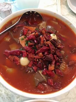 顺兴这家店是家川菜馆,店内装修古色古香的,晚上还有变脸表演,非常热情。毛血旺属于是川菜内比较具有代表性的菜。毛血旺内食材很多,有鸭血、黄鳝、午餐肉、鹌鹑蛋、鱿鱼卷和黄喉等等,整体口感麻辣鲜香,值得推荐。…查看更多