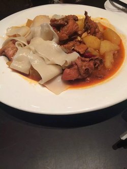 西域美食楼这家点是和朋友去展览看展览后光顾的,开在展览馆附近的美食城内,生意不错。喜欢它家的大盘鸡,盘子很大,里面的食物量也很足。土豆绵软,鸡块嫩而入味,搭配上Q弹的宽面沾上大盘鸡的汁后味道更好。…查看更多