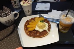 吃完韩式烤肉又来吃的mangosix,觉得自己是一心要把韩式的美味都吃遍呀,水果华夫饼长的蛮不错的样子,芒果感觉用料也是用的挺猛的,每一块的芒果肉都超级大的说,冰激凌是芒果味道的,也非常的香甜,华夫饼比较香脆,吃起来奶香味很浓郁。…查看更多