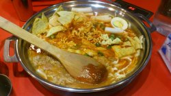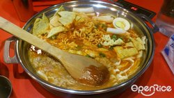 迪美下面人气很高的一家店,店面挺好找的,因为人很多,桌椅有点拥挤,中午坐满了人。看了下菜单,2个人50元起点,有四种锅可选:传统、芝士、牛肉、鸡肉。点了牛肉年糕锅加一分鱼饼,送了一大瓶水,丁丁优惠有88折券,打下来正好50元。吃下来量正好,重辣完全可以接受,是我吃过比较好吃的韩国年糕,鱼饼很喜欢吃,白菜比较多,辣酱和正宗,跟我买的韩国辣酱一个味道,下次再尝尝芝士年糕。…查看更多