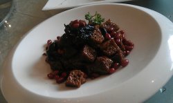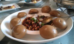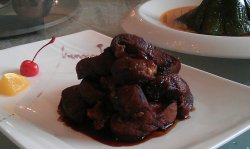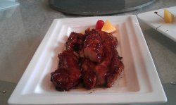参加表哥的婚礼来着,据说5000多元一桌,貌似有个奇怪的要求,如果穿婚纱每桌要加收200元。。。所以表嫂穿了中式的礼服空间不是很大,20桌有点拥挤有餐前鸡尾酒会,芒果布丁很好吃呀,可惜服务员不太愿意上点心, 盘子一直空在那里~菜肴的话,有些对不起价格,菜少,烧的很不怎么样呢黄油焗龙虾:龙虾肉很有弹性,黄油味浓郁花蟹:很失败的一个菜,很咸,而且黄酒味很重,难道是螃蟹不新鲜要掩饰一下?婚礼结束后可以上楼观看焰火表演~不提供免费停车,小郁闷 :(…查看更多