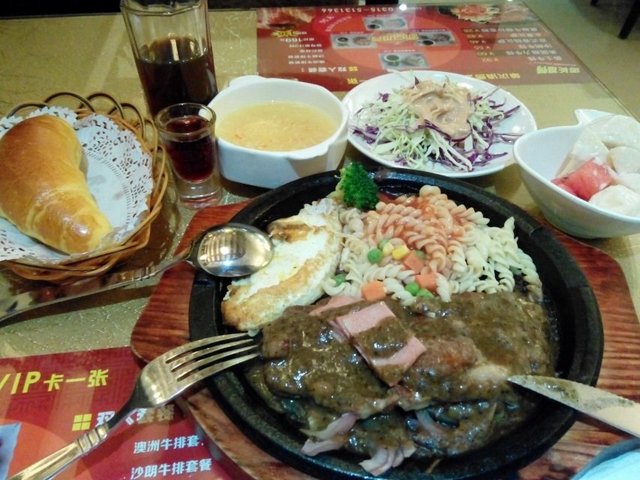 牛排 豪客来牛排馆 2014-08-06环境还是不错的,也是很久没有吃西餐了雅致的管了很适合情侣约会,这里的套餐还是比较实惠的,价格也说不上太贵都可以接受,那个铁板牛排配主食还是不错的,牛排吃着很嫩口,七成熟的成度刚好,牛排吃着入味新鲜 ,再喝上一杯红酒,点了沙拉还是很享受的。还有一些水果,拌碟一份 ,酱料味道也不错 套餐是嘴实惠的 比如说牛扒套餐 里面有一份牛扒,一份意粉,还有一份罗宋汤价格经济实惠 牛扒做的很好吃搭配黑椒汁 味道更浓郁…查看更多以上食记乃用户个人意见 , 并不代表OpenRice之观点。赞好分享牛排 豪客来牛排馆 https://s.openrice.com/KtLT0m0ztU5W0检举 张贴 评分4味道5环境4服务5卫生4抵食用餐途径堂食
