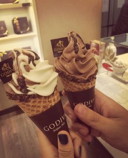 小资的吃了godiva,觉得蛋筒做的挺高大上的,一个蛋筒冰激凌的价格相对于他们家的巧克力来说简直是很便宜了,黑巧克力的赞,味道醇厚,入口觉得特别的香浓,几乎就是和吃巧克力块没差,黑白软巧克力味道尝了下觉得太淡了,吃巧克力还是喜欢浓郁的,越香滑浓郁越好。…查看更多
