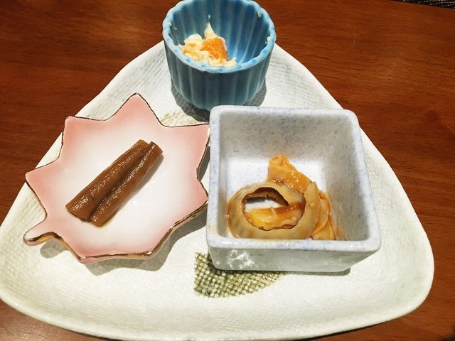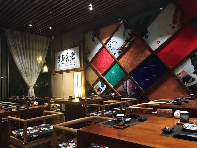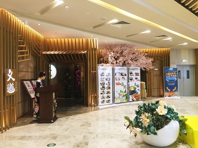 在网上看见这家新开的日本料理店评价不错,于是夜晚去试试,义道高级日本料理在缤纷天地店的二楼,位置还是比较显眼,很容易看见,门口有棵樱花树布置。前台、服务员均身穿日式浴衣,感觉很有东瀛feel。里面的环境比较清幽高雅舒服,装潢不错,部长带领客人入座时会适当拉开彼此的距离,细节做得不错,看得出服务是有专业培训的。服务员加水的频率很高,基本只要一看见你的茶壶是空的就会马上上前主动加水,加到都不好意思了。茶具、茶壶、餐具都看得出经过细心的精选,很有质感。还有些餐具可供客人选购。翻开菜牌,价格都非常昂贵哦。。。不过也有些午市套餐(周一至周日中午)会比较实惠,还有些海鲜火锅、刺身价格是ok的,单点就都比较贵了。我们都是单点的,感觉没吃什么就花了300大洋了