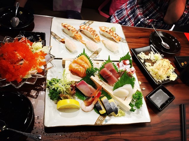 下次试试套餐那些。送的餐前小吃,好好吃,就是送的都做得好好吃,有带子裙边,是腌制的吧,酱汁烤得刚刚好,好正。明太子沙拉也好新鲜,超级好味。#牛油果软壳蟹卷# 感觉比较清淡,食落去牛油果比较腻,不是很推荐,这个寿司有点失望。#铁板雪花牛仔骨# 牛仔骨煎得刚刚好,牛肉吸收了酱汁,好入味,有少少肥,但系都系好正。#甜虾手握寿司# 又系好正的一个寿司,虾很新鲜,也很鲜甜,一啖落去好满足。#海鲜粥# 感觉好似系度饮面豉汤,不是很推荐,没有粥的质感。#盐烧秋刀鱼# 感觉都系拿海盐来烧的,好入味,特别是外表的那层鱼皮,好正。咬落去里面的鱼油漏出来,好好味。#海鲜炒饭# 呢个分量不是很多,味道一般般吧,有点清淡,可能加的豉油会好吃的。#串烧牛小排# 这里的烤物都不错啊,牛肉都烤得非常之好味,好有水准。#日式炸鸡块# 这个比较一般,外表那层皮太厚了,里面的鸡肉吃起来怪怪的,不是很好吃。#牛奶拼朱古力雪糕# 餐后免费送水果或者雪糕,选了雪糕,非常的好食,不会因为免费而打折扣。…查看更多