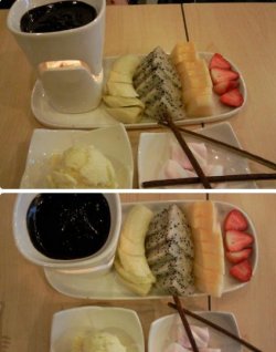 这家新开的甜品店在大世界附近的,店么不大,不过挺干净简洁的11点多路过的时候想进门吃东西,不过服务员说11点刚开门,甜品的师傅还在厨房里准备材料呢看来以后要12点或者下午去那里才正好可以吃附近逛了圈到12点多,进门店里还是没人,点了巧克力火锅想尝试一下等了大概10几分钟吧,老板亲自上了东西,有水果啦,棉花糖和POCKY还有一球冰淇淋,最最重点就是巧克力火锅了,炉子很漂亮,用小蜡烛点着的水果很新鲜,巧克力呢也很浓,虽然看着量不多,可是我觉得正好因为这种巧克力火锅吃多了会腻!店里的甜品都价格很实惠,以后还会来哦~关注他们的微博还可以送份甜品的…查看更多