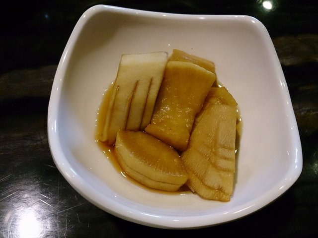 五号停机坪这边的餐厅虽说也不少,但是韩国料理的餐厅就不是很多了,这家汉釜宫韩国料理是正对着堂会的,门面不是很显眼,但是节假日的话还挺多人帮衬的,所以上菜速度稍慢,餐厅服务态度还是可以的,烤肉为主。点餐之前有几款小菜是赠送的,酱萝卜是其中一道小菜,萝卜口感挺爽脆的,但是不是很够入味,味道稍微淡了点,也不够开胃。…查看更多