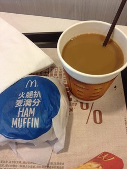 早上在这里吃的,点了一个火腿扒麦满分套餐,一个火腿扒汉堡,一杯咖啡。汉堡里面没有蔬菜,问服务员,说是最近都没有生菜了,要等他家的生菜长出来还会有哈哈。没有生菜的汉堡里面只有一片肉好奇怪。服务员送了我一张早餐免费豆浆的券弥补了我心灵的创伤哈哈。咖啡加了奶和半糖以后还得非常的苦,不知道一点糖不加的人都是怎么喝进去的。…查看更多