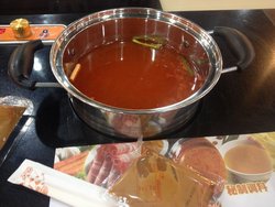 在大悦城逛街,想少吃一点东西,就来了这家店。每人一只的小火锅,那天正好赶上大虾配锅底的套餐打折,就点了一个。点了一份羊肉套餐,一份羊肉,一份蔬菜套。锅底点了一个番茄锅底,一个清汤锅底,番茄锅底红红的,但是番茄的味道感觉不够重,要是再浓点就更好了。尤其喜欢牛肉丸,一咬油都流出来,非常非常香。…查看更多