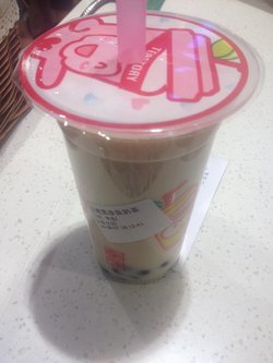 和朋友在乐天百货下面吃饭,朋友想喝点东西,又买了这家的饮品。这次点了不一样的,一个紫薯盆栽奶茶,一杯黑珍珠奶茶。紫薯盆栽奶茶给了朋友惊喜,卖相不错,下面是紫薯奶茶,上面一层奶油,再上面是巧克力粉,加上一颗绿色植物装饰,非常像盆栽哦。紫薯的味道很浓,伴随着淡淡的奶的味道,相对而言尝不出茶的味道啦,最后把奶油搅在一起也非常的美味。黑珍珠奶茶味道有一点点淡,不醇厚,但是朋友很喜欢淡淡的感觉。…查看更多