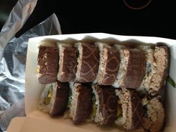 寿司店的寿司还不错,一个礼拜会去尝试一次。这次买的寿司味道也还不错,口感不是一味的咸,还有点甜味,最上面一层是巧克力色的蛋糕,甜极了。下面是米饭,中间裹了黄瓜、玉米等清爽的蔬菜,好吃…查看更多