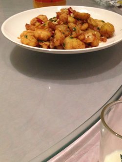 椒盐土豆,土豆非切片状,块状的有、片状的有、粒状的也有,显得格外参差不齐,但架不住味道好。味道很重、咸味、鲜味,因为放了很多辣椒,还有辣味。土豆不是脆爽型,糯糯的口感,好吃,大家吃的精光…查看更多