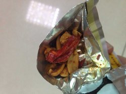 麻辣花生,论斤卖,包装袋的材质就能看出不便宜,内部的空气还是全抽空。一袋只有10g还是20g,花生没几颗,辣椒,花椒这类也参杂其中,特别特别辣,还有酒的味道参杂里面,当下饭的,特别棒…查看更多