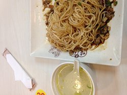 咬不得家和支付宝联合有活动,全场8折,一天有2次机会。买了份拌面,只付了8元。盘子是塑料盘,轻,没有骨瓷盘的手感好。拌面觉得多,但实际很少。味道一般,比较咸。送的汤很好喝。…查看更多