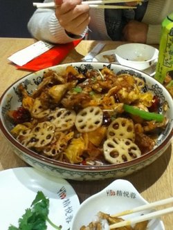 味道挺不错的牛蛙店,微辣的正好,不吃米饭,两个人这样一盆的牛蛙也正好,除了牛蛙,还有好多的蔬菜哦,藕,土豆,莴笋也是炸过的,吃起来好脆哦!!牛蛙的肉质很爆满,牛蛙腿上都是肉肉!!…查看更多