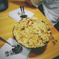 喜欢看韩剧,雪冰一定要去尝试的啊!去总店吃的,工作日的下午人也那么多,这生意也太好了吧!两个人点了一份招牌雪冰,真心的好吃!!黄豆粉好香哦,里面的小年糕,软软糯糯的!!!冰的口感非常非常的细腻!!点赞!!贴心提示哦,买好单服务员会给你牌子,牌子震动了就说明东西好了自己去拿哦!…查看更多